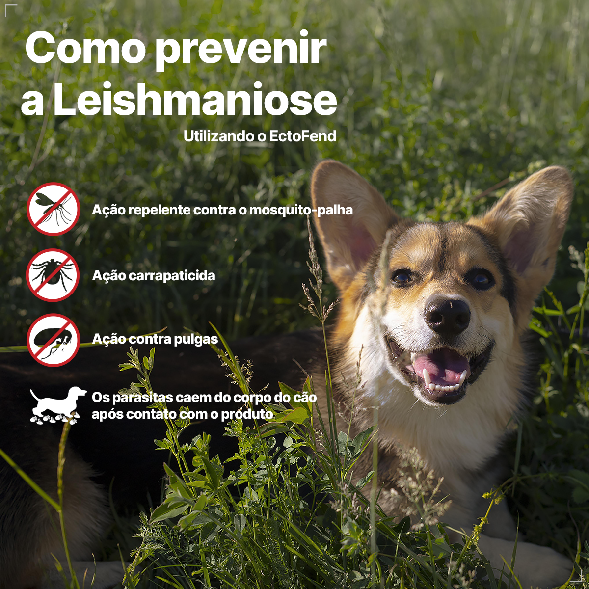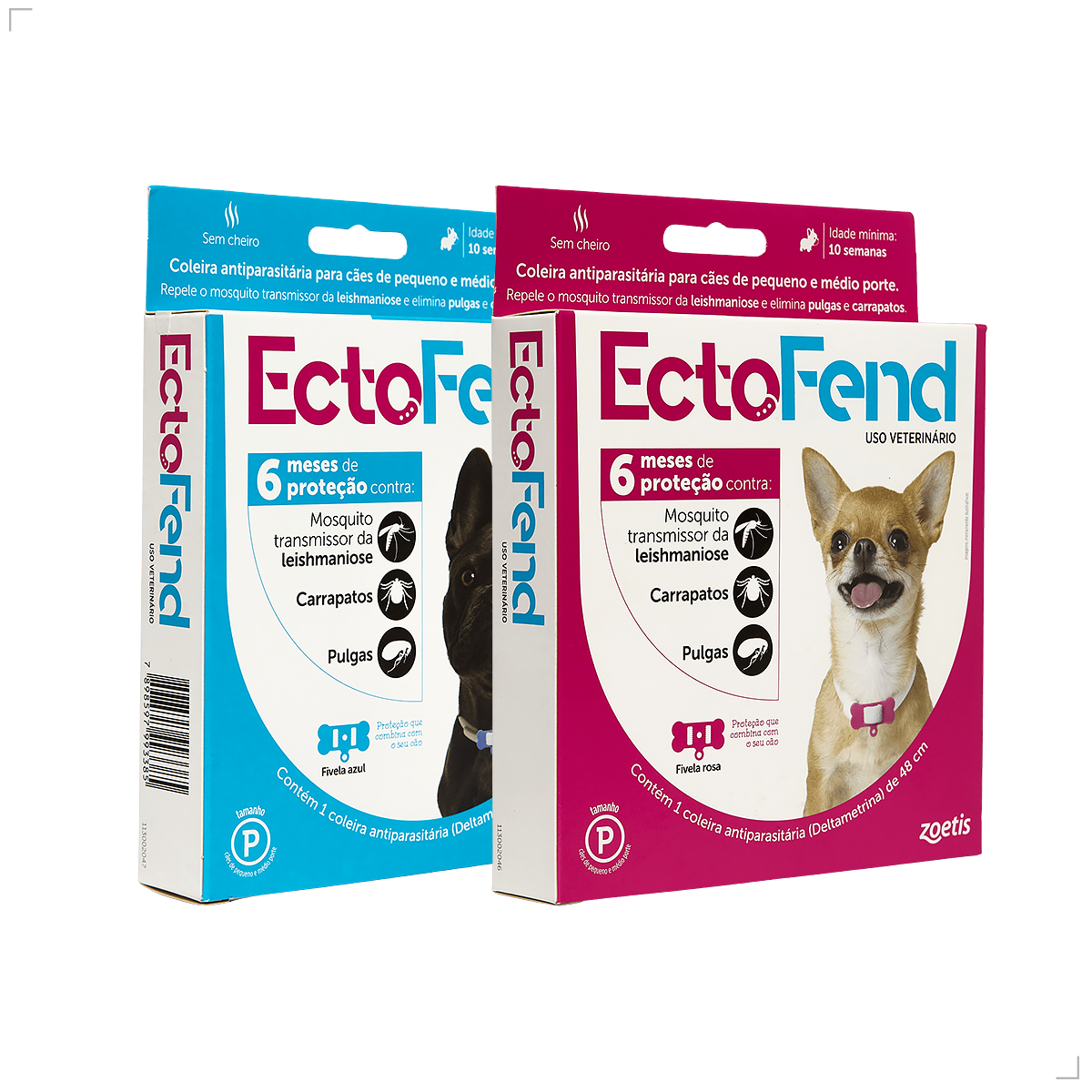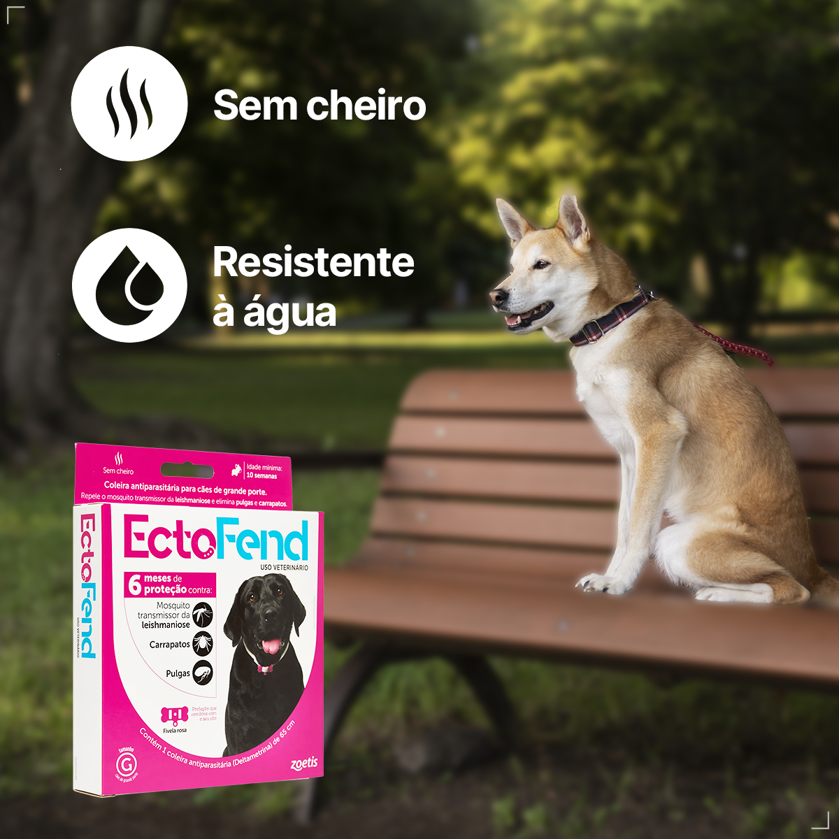 A EctoFend® é uma coleira ectoparasiticida de alta eficácia, desenvolvida para proteger seu cão contra pulgas, carrapatos e mosquito-palha (Lutzomyia longipalpis), transmissor da leishmaniose visceral canina.