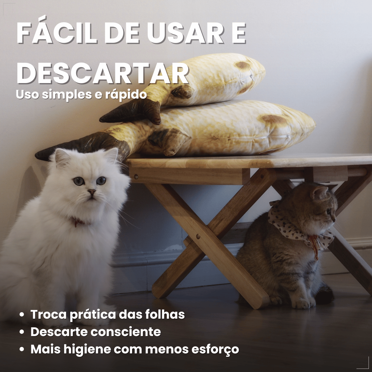 Cada pacote contém 50Un de folhas com medidas de 62x58cm, adequadas para diferentes portes de cães. Além de sustentável, o produto é até 50% mais econômico do que fraldas e tapetes higiênicos convencionais, oferecendo excelente custo-benefício.